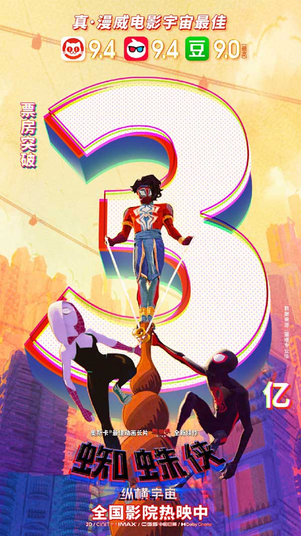 《蜘蛛侠:纵横宇宙》内地票房破3亿 全球火爆热映创新纪录